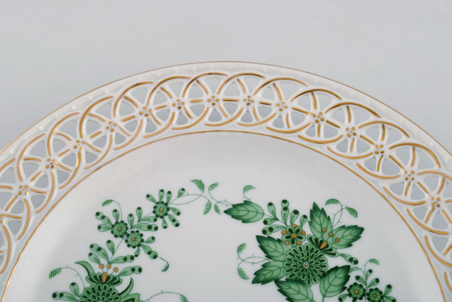 Herend Green Chinese plate in openwork hand-painted porcelain. Mid-20th century. Diameter: 24 cm In excellent condition. Stamped.