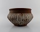 Gutte Eriksen (1918-2008), eget værksted. Stor unika skål i glaseret stentøj med vertikale indridsede linjer. Dansk design, 1960'erne. Måler: 27 x 16 cm. I flot stand. Signeret.