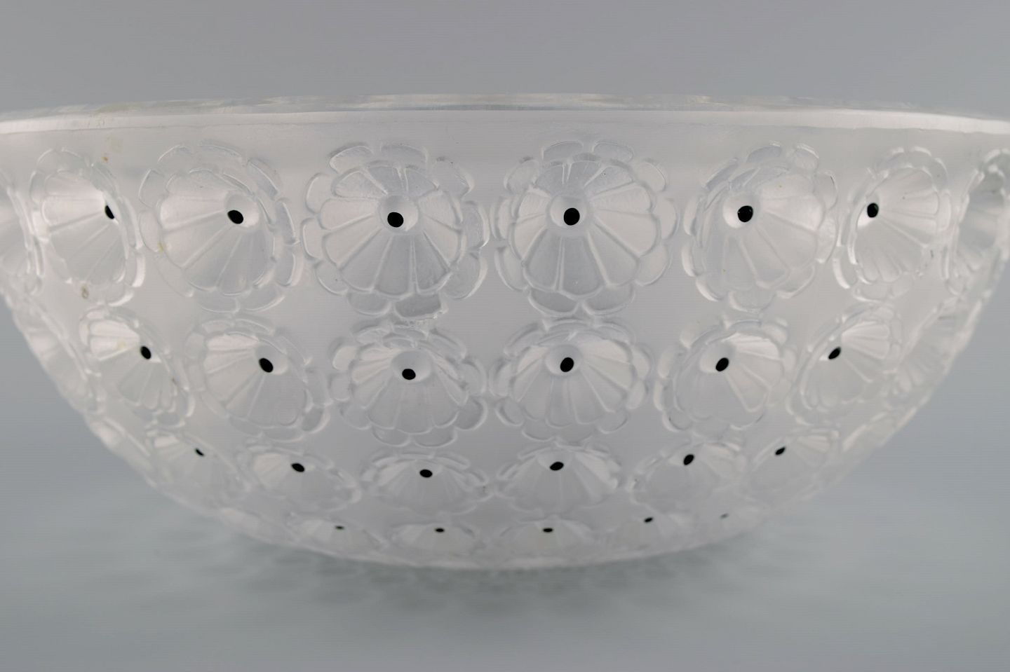 René Lalique art deco Nemours skål i matteret kunstglas modelleret med blomster. Midt 1900-tallet. Måler: 25 x 10,5 cm. I flot stand. Signeret.
