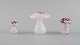 Smålandshyttan, Sweden. Seven mushrooms in mouth-blown art glass. Purple and pink shades. 1960/70s. Largest measures: 7.2 x 6.5 cm. In excellent condition. Sticker.