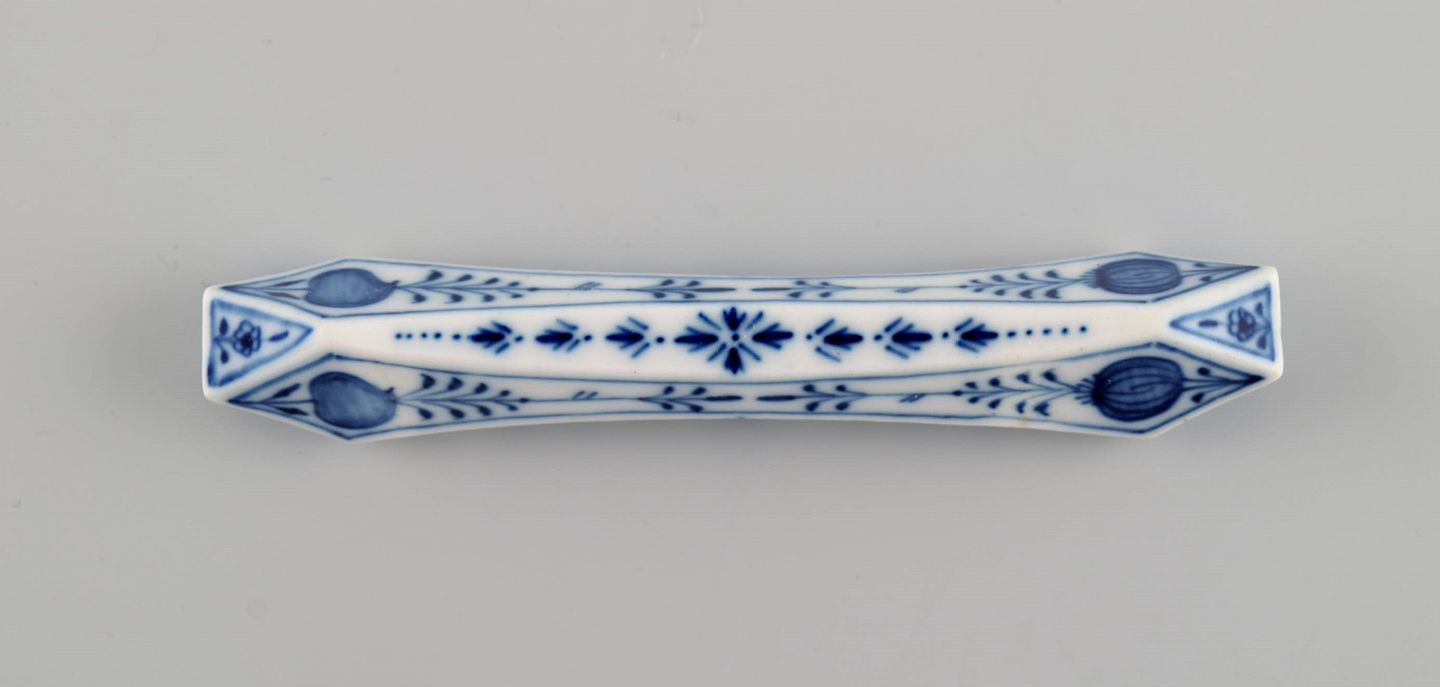 17 Meissen Løgmønstret knivstole i håndmalet porcelæn. Ca. 1900. Måler: 10 x 2 cm. I flot stand. Signeret. 1. Sortering.