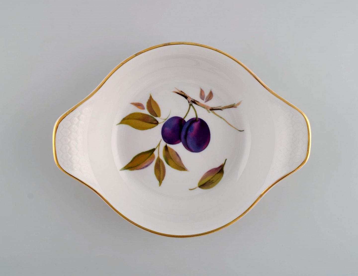 Royal Worcester, England. A pair of Evesham porcelain serving bowls decorated with fruits and gold rim. 1960/70s. Measures: 21.5 x 4.5 cm. In excellent condition. Stamped.