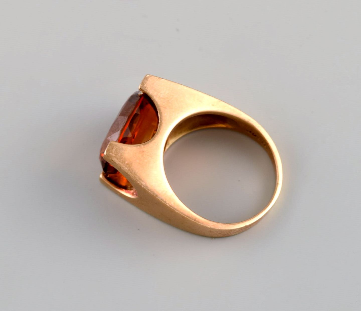 Just Andersen (1884-1943), Danmark. Art deco cocktail ring i 14 karat guld prydet med citrin. Original æske. 1920/30'erne.