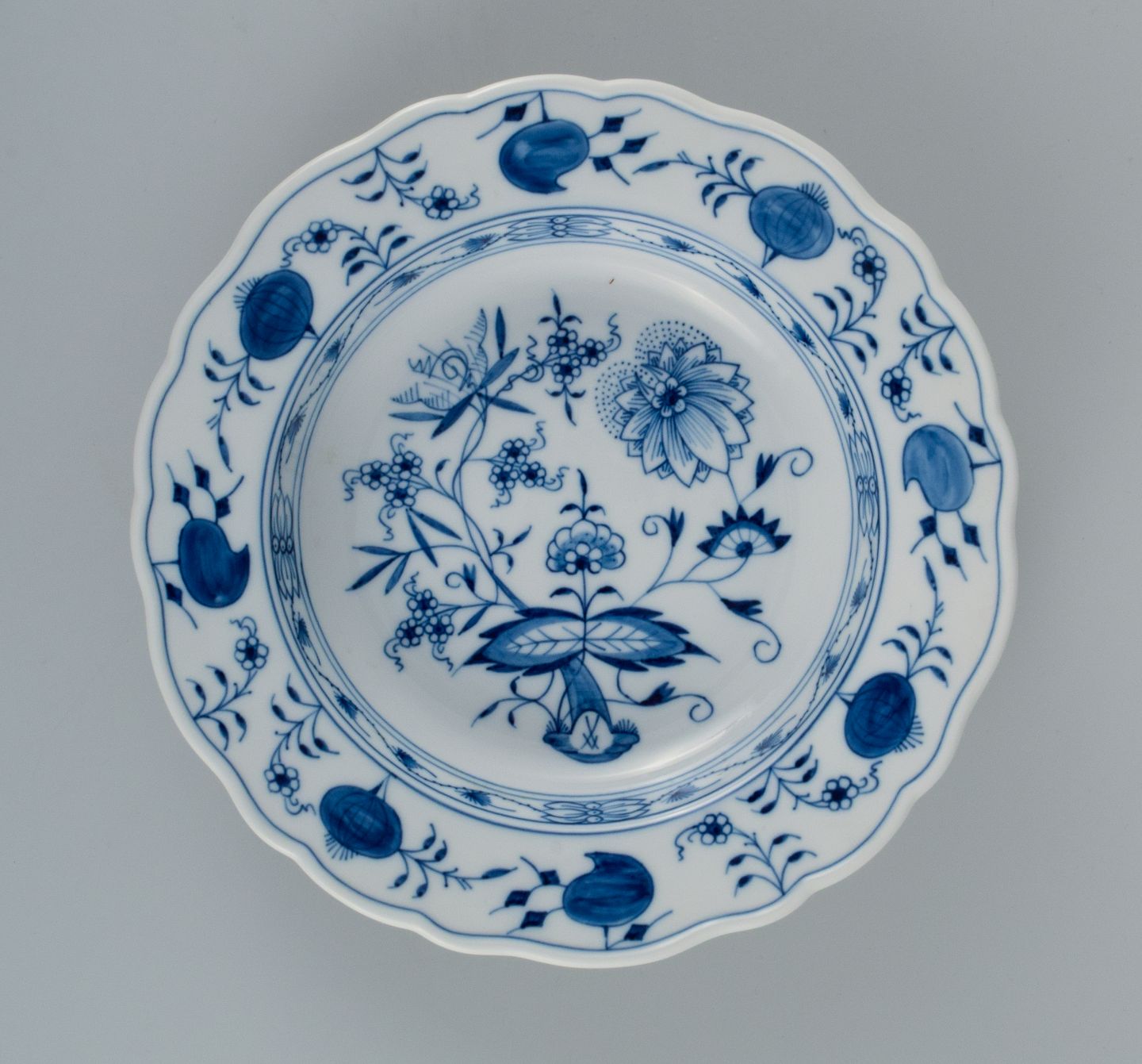 Meissen, a set of four deep plates, hand painted, Blue Onion. Late 19th century. In perfect condition. First factory quality. Marked. Dimensions: D 23.4 x H 5.0 cm.