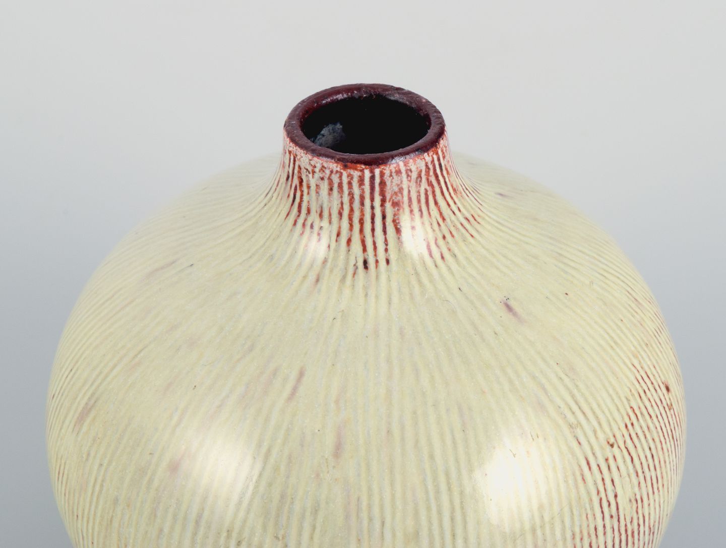 Osa, Denmark. Unique ceramic vase in cream-colored glaze. 1970s. In perfect condition Dimensions: H 8.0 x D 9.0 cm. OSA was a collaboration between Aase Feilberg, Chr. Frederiksen and Gutte Eriksen.