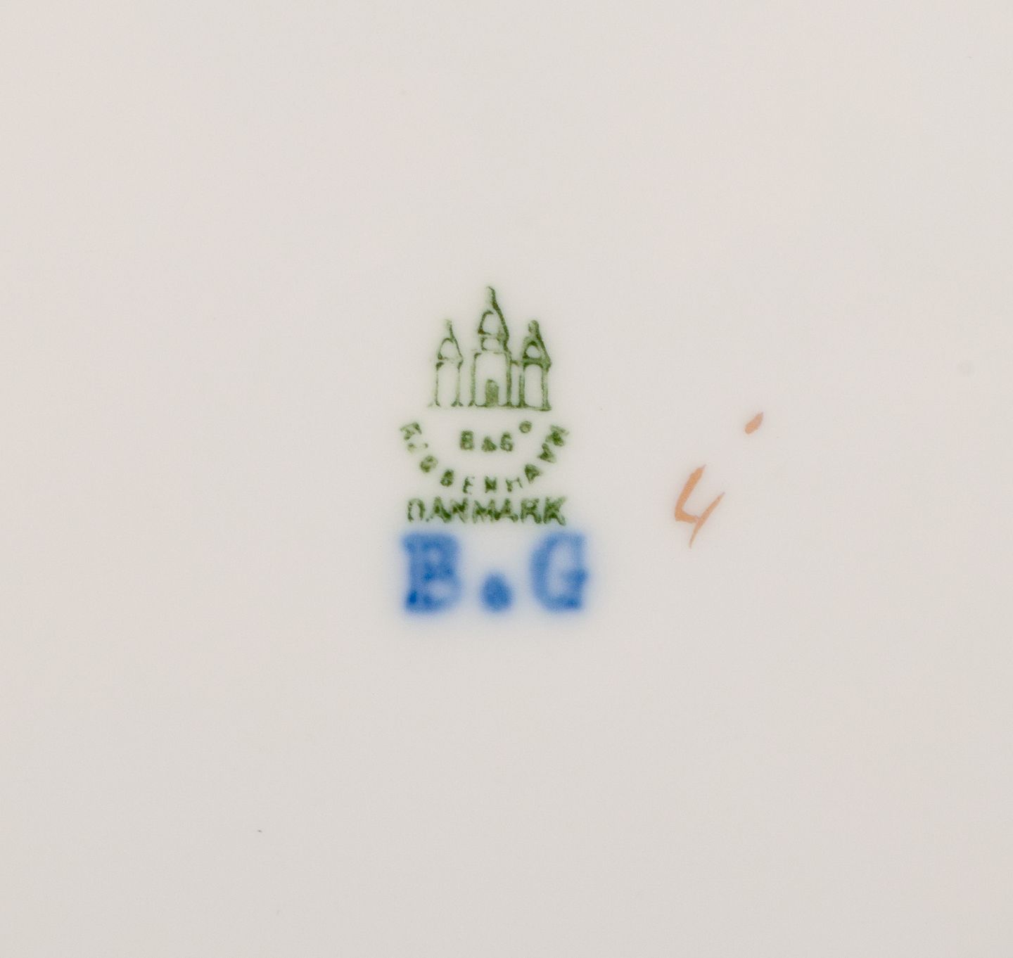 Bing & Grøndahl, seven porcelain lunch plates hand-painted with polychrome flowers and gold decoration. Approx. 1920/30s. In excellent. condition. Marked. First factory quality. Dimensions: D 21.0 cm.