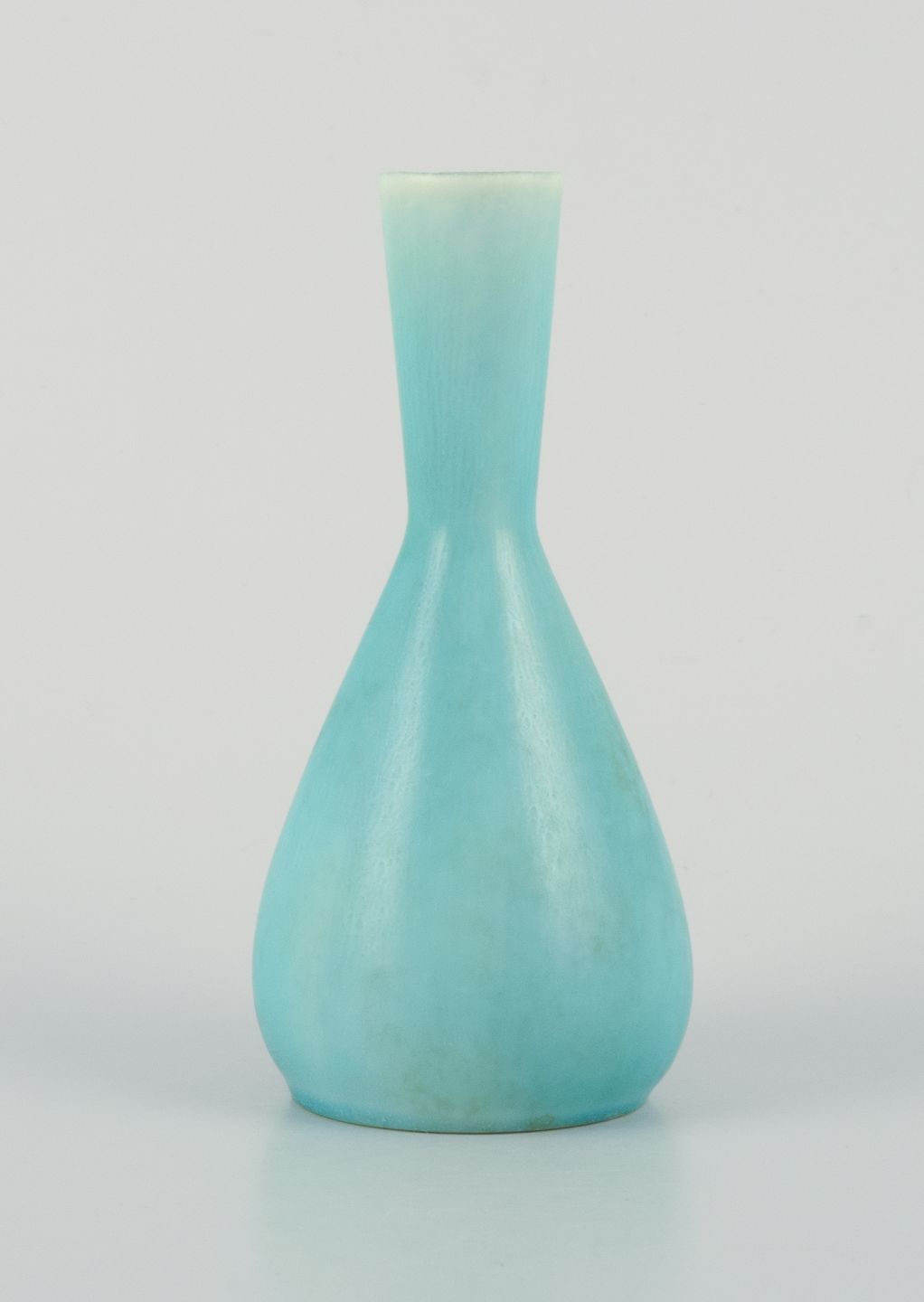 Carl Harry Stålhane for Rörstrand, Sweden, small ceramic vase in beautiful turquoise glaze. Mid-20th century. Marked. In perfect condition. Second factory quality. Dimensions: H 10.8 cm x D 5.0 cm.