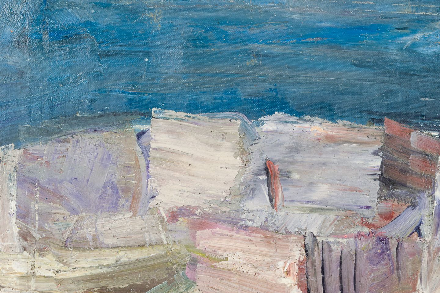 Pär Lindblad (1907-1981), svensk kunstner, olie på lærred, modernistisk landskab. ”Klippor och träd" 1962. Signeret. Perfekt stand. Mål: H 33,0 cm x B 55,5 cm. Total H 43,0 cm. B 63,0 cm.