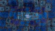Sverige, ryatæppe i blå nuancer. Geometriske felter. Modernistisk design. 1970’erne. I flot stand. Mål: 133 cm. x 78 cm.