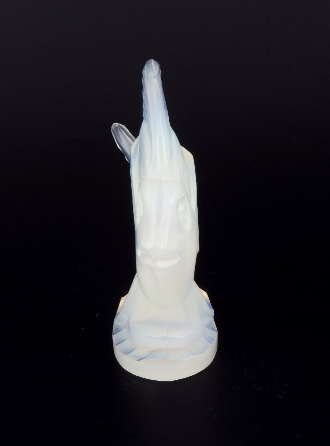 Sabino, Frankrig. Fisk i kunstglas. Art Deco opaline glas med blåligt skær.
