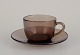 Vereco, Frankrig. Et sæt på fire kaffekopper og underkopper i røgfarvet kunstglas. 1970’erne. Stemplet Perfekt stand. Kop: D 7,5 uden hank x H 5,5 cm. Underkop: 13,2 cm.