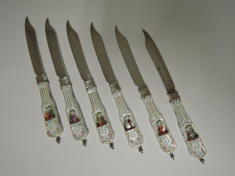 Aug. Thomsen. Silver (830). 6 fruit knives with the shafts of the porcelain. Length 20.5 cm. Produced 1918