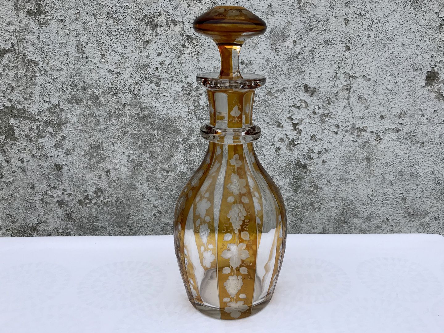 Crystal carafe, With amber ribbon and vine leaves, 28.5cm high * Nice condition *