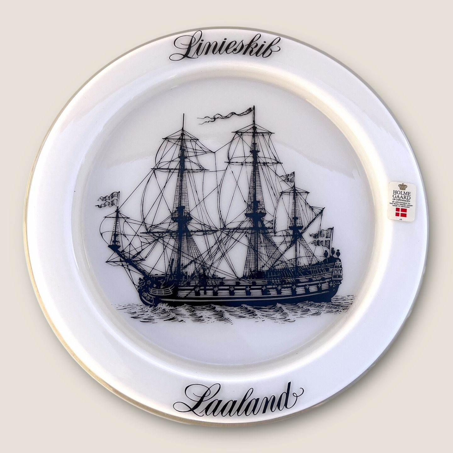 Holmegaard, Ship plate, 1975, Line ship, Laaland, 19.5 cm in diameter, Design Michael Bang *Perfect condition*