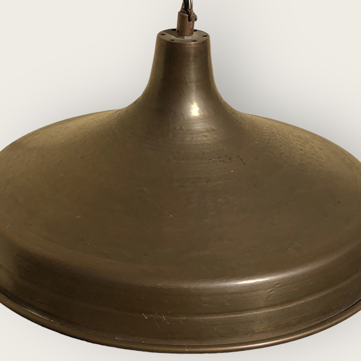 Kobberlampe med kædeophæng. Diameter 43 cm. Pæn brugt stand.