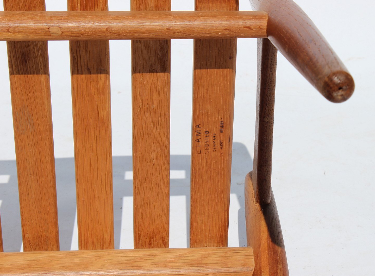 SolgtSkammel til Cigaren, model GE240, af egetræ og grønt uldstof designet af Hans J. Wegner og fremstillet af Getama i 1960erne. Skamlen er i flot stand.