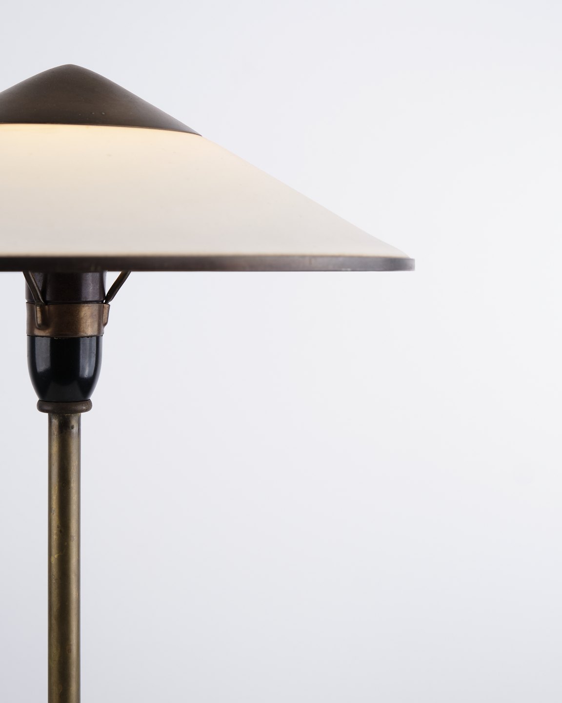 Lampe de table Niels Thykier Kongelys en laiton avec abat-jour blanc cassé. Design danois classique avec une lumière élégante et fonctionnelle.
