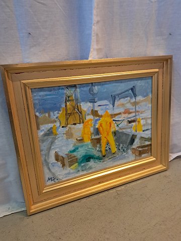 Maleri af Dragør Havn i guldmalet ramme, af : Mogens Amdi Thorsen (1924-2016) Det har brugsspor. Højde 23cm Bredde 29cm Emne nummer: 77363