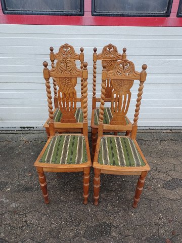 4 Winsor stole i massivt egetræ, fra 1970erne. De har brugsspor. Ryghøjde 91cm Sædehøjde 45cm Emne nummer: 77516