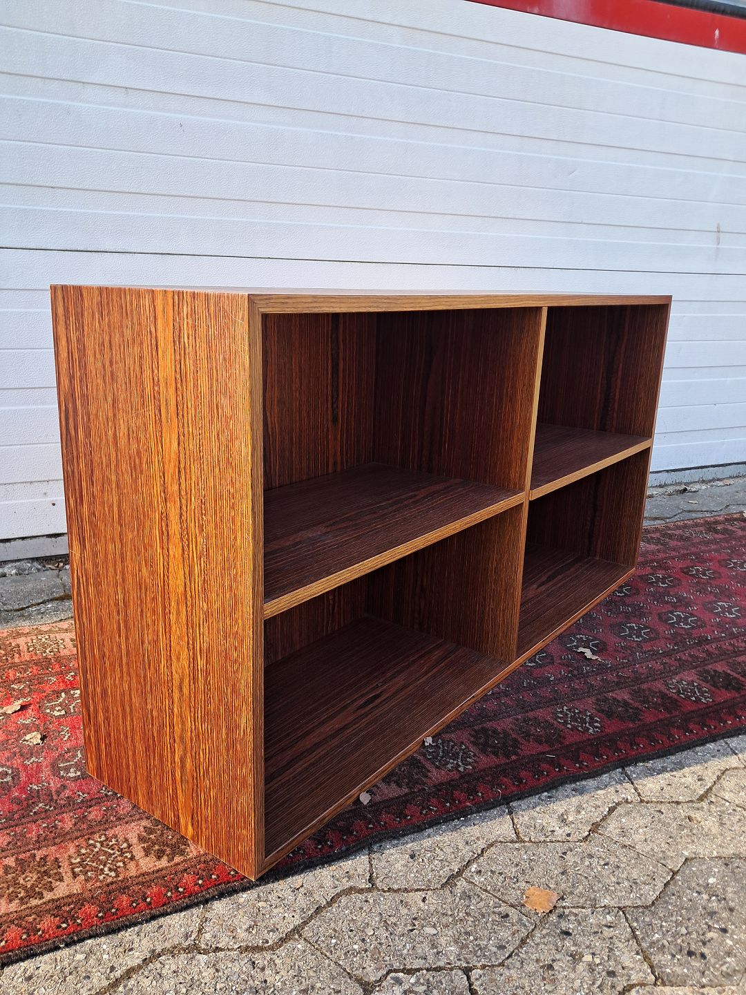 Reol i fineret palisander, fra 1970erne. Den har brugsspor. Højde 60cm Bredde 120cm Dybde 30cm Emne nummer: 77897