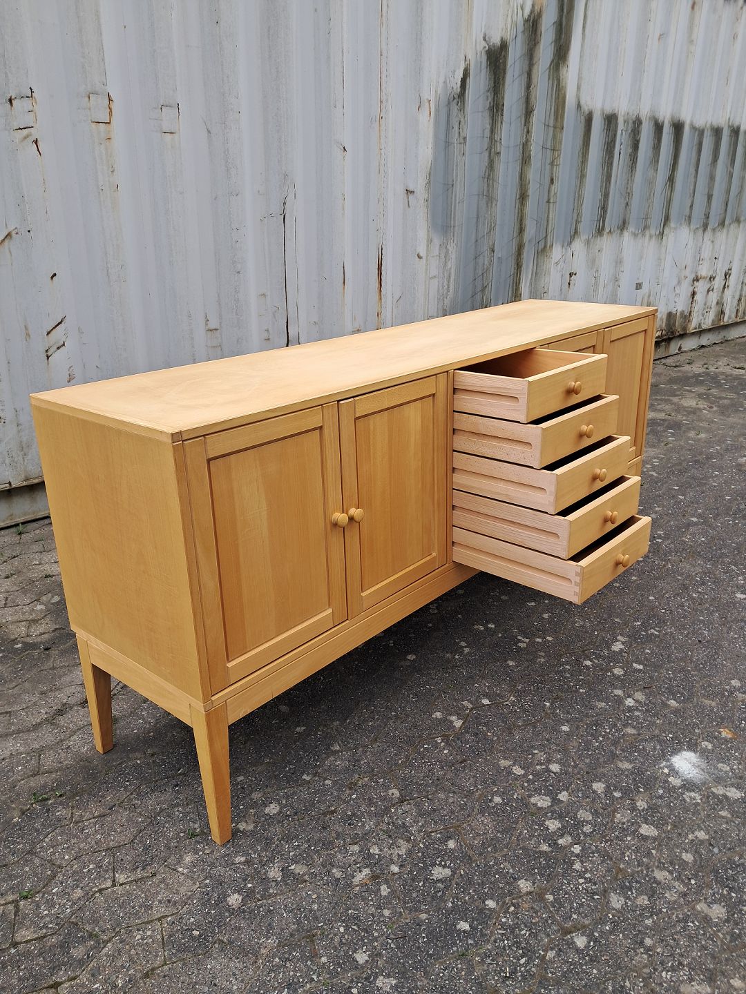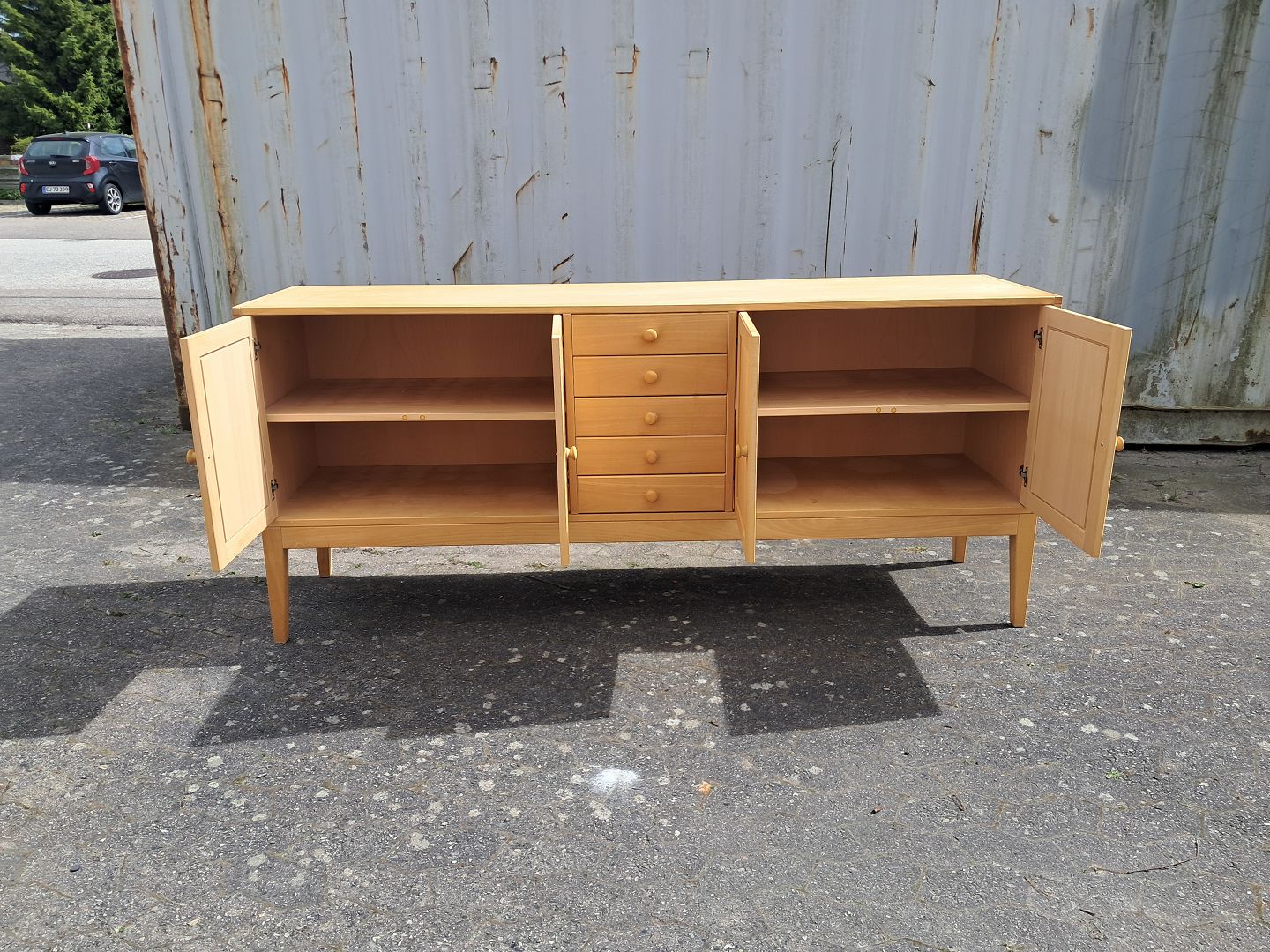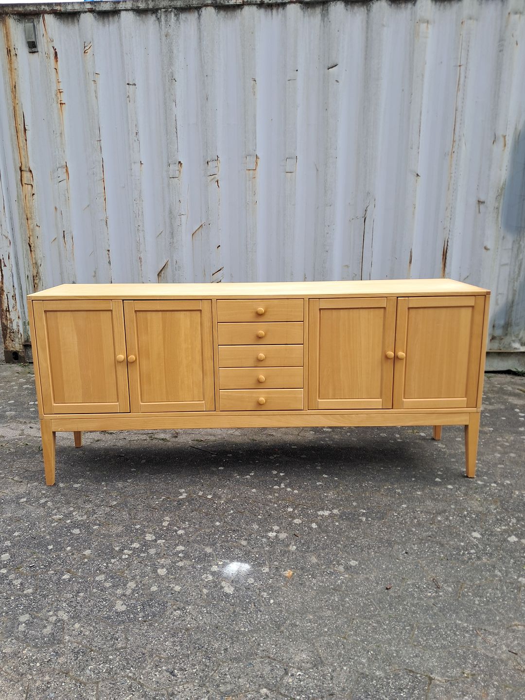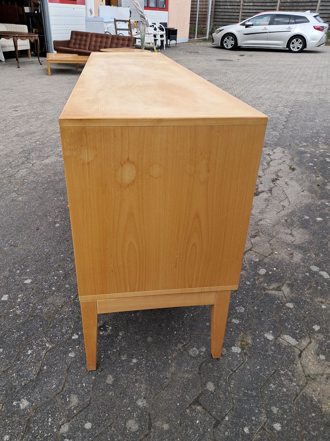 Skænk i fineret bøgetræ, fra 1990erne. Den har brugsspor. Højde 87cm Bredde 198cm Dybde 50cm Emne nummer: 78044