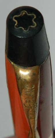 Coral red Montblanc no. 33 pencil. Made around 1955. In good condition. Original "gold" in the star and Montblanc logo on the side. 13 cm long.