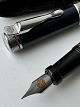 Blå metalic Harley Davidson skrivesæt - Fyldepen og kuglepen i originalt tilhørende futteral. Kuglepennen virker men der skal indsættes ny blækpatron før end fyldepennen virker. Alle dele originale og i god stand. L. 12,3 cm