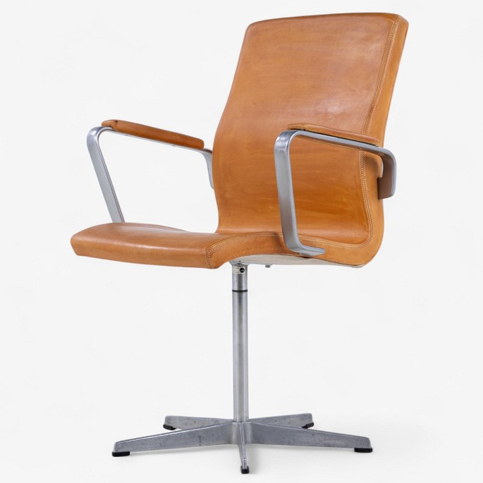 Lavrygget 'Oxford'-kontorstol i patineret naturlæder på stel af stål.