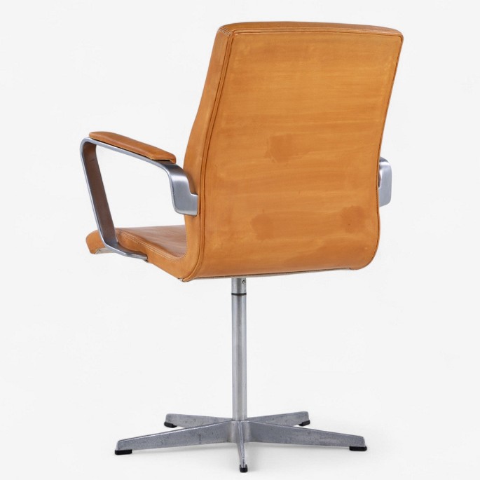 Lavrygget 'Oxford'-kontorstol i patineret naturlæder på stel af stål.