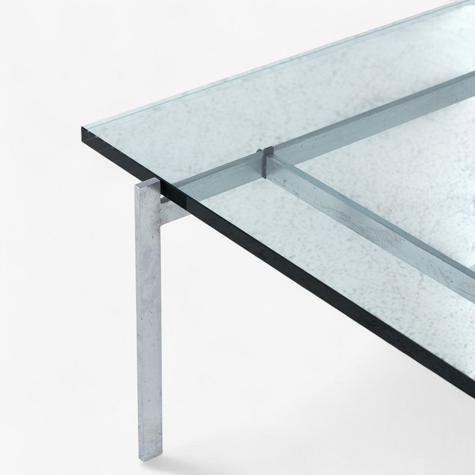PK 61 - Sofabord med glasplade på stel af stål. Mærket fra producent.