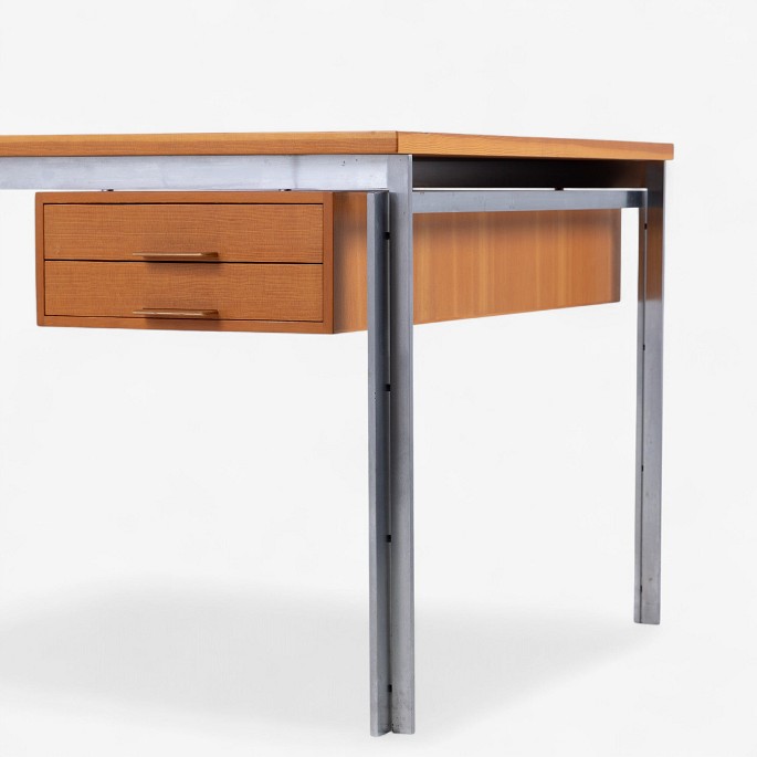 PK 55 - Work table/desk with top and drawer module in Oregon pine and steel frame. From 1985. Manufacturer's mark.