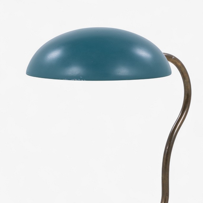 Model E1325 - Bordlampe i grønlakeret metal med justerbar arm i messing.