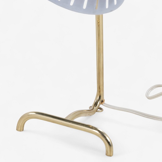 Model 8256 - Bordlampe med stel i messing og skærm i grålakeret metal. Fra 1950'erne.