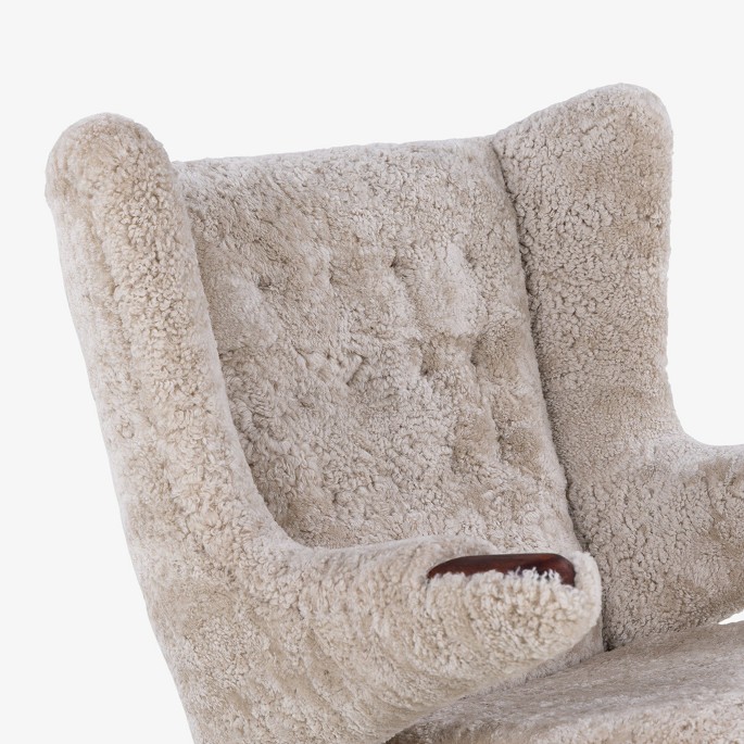 AP 19 - Nybetrukket Bamsestol i lammeskind (farve: Moonlight) m. skammel.