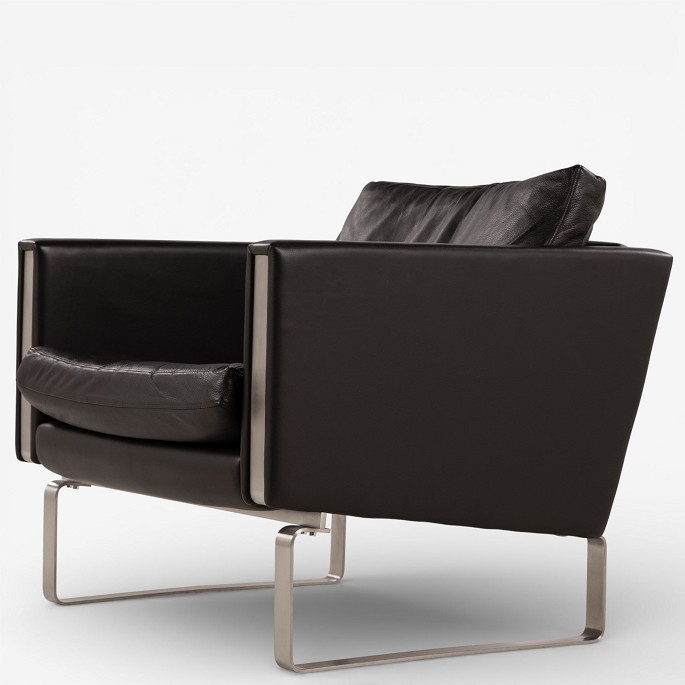 CH 101 - Lænestol i mørkebrunt, patineret semi-anilinlæder med stel i stål. Mærket fra producent.