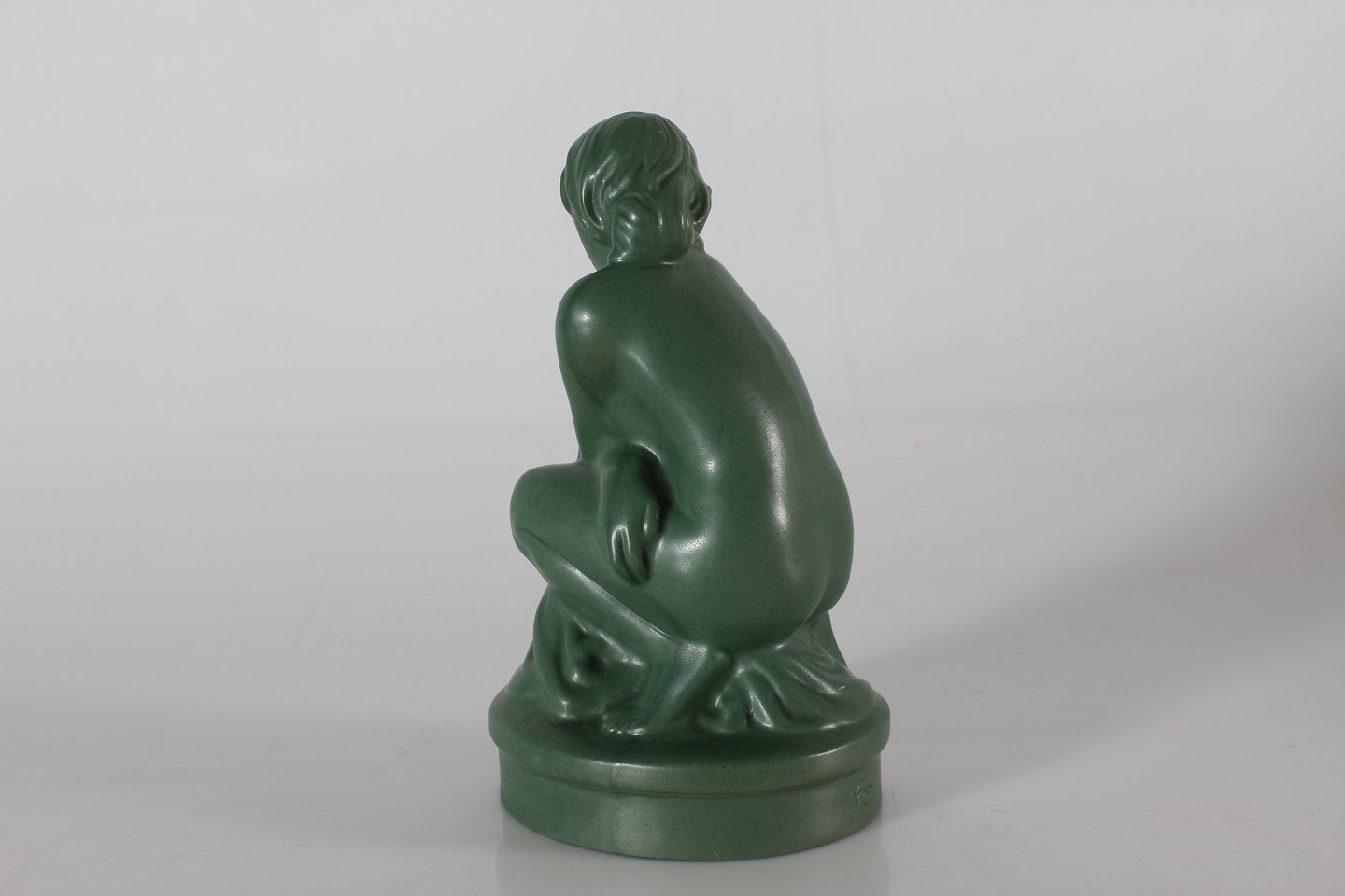 P. Ipsens Enke Figur "Susanne" siddende kvinde nr. 923 formgjort af Holger Christensen Fremstillet af keramik m/jadegrøn glasur Højde 20 cm Fin stand