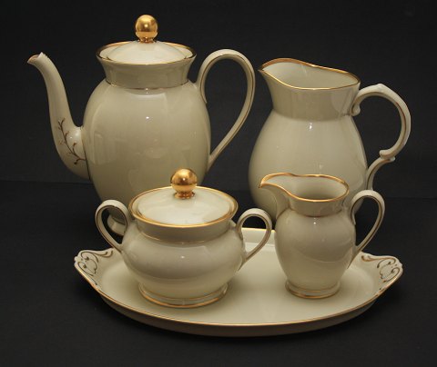 Kjøbenhavns Porcellains Maleri, Vallø cremefarvet glasur med guldbelægning. Stellet er fremstillet fra midten af 1930'erne. Stellet er i pæn stand.