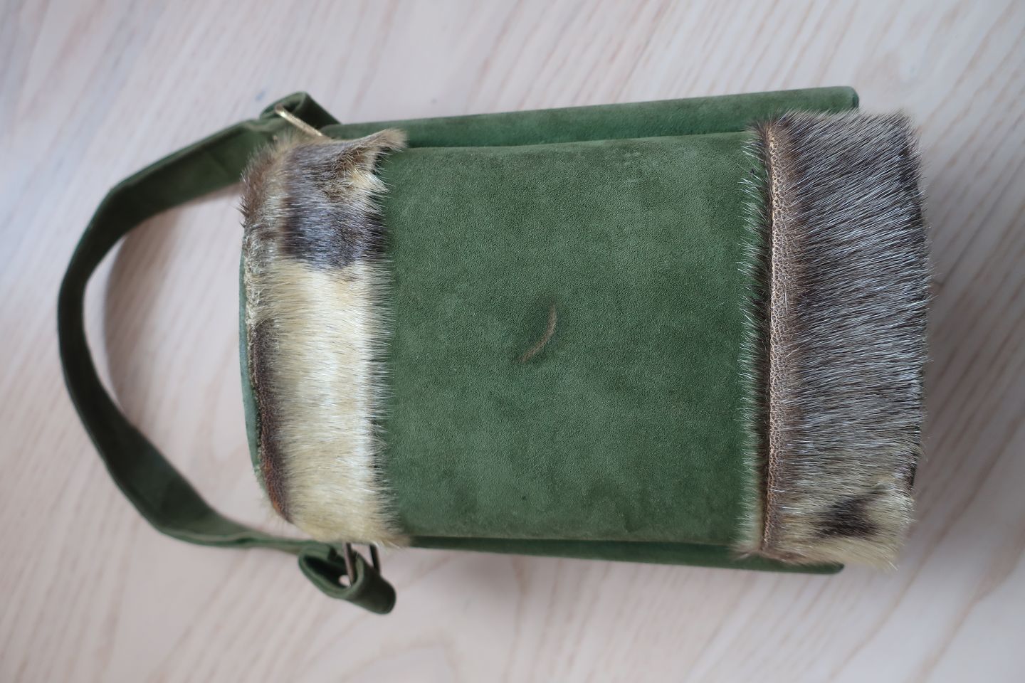 Vintage handbag with a fur coat as trimming In a good condition inside and outside but with patina as the follow of the use Articleno.: 4-11162
